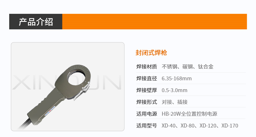 封闭式管管焊枪是针对各种管件对接而设计研发的全位置自动焊接的专用焊枪,焊枪系统采用内壁循环水冷,长时间连续工作不发热; 采用进口绝缘材料和铝合金加工而成,重量轻耐用;配有5个功能操作按钮,便携高效;采用Z系列合金齿轮,减少60%故障率,寿命约同类产品的两倍。