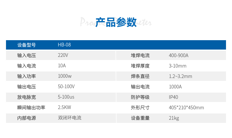 适用材质及范围:设备输出阻抗小,适用于 铁件、钢件、铜件、铝合金、镁