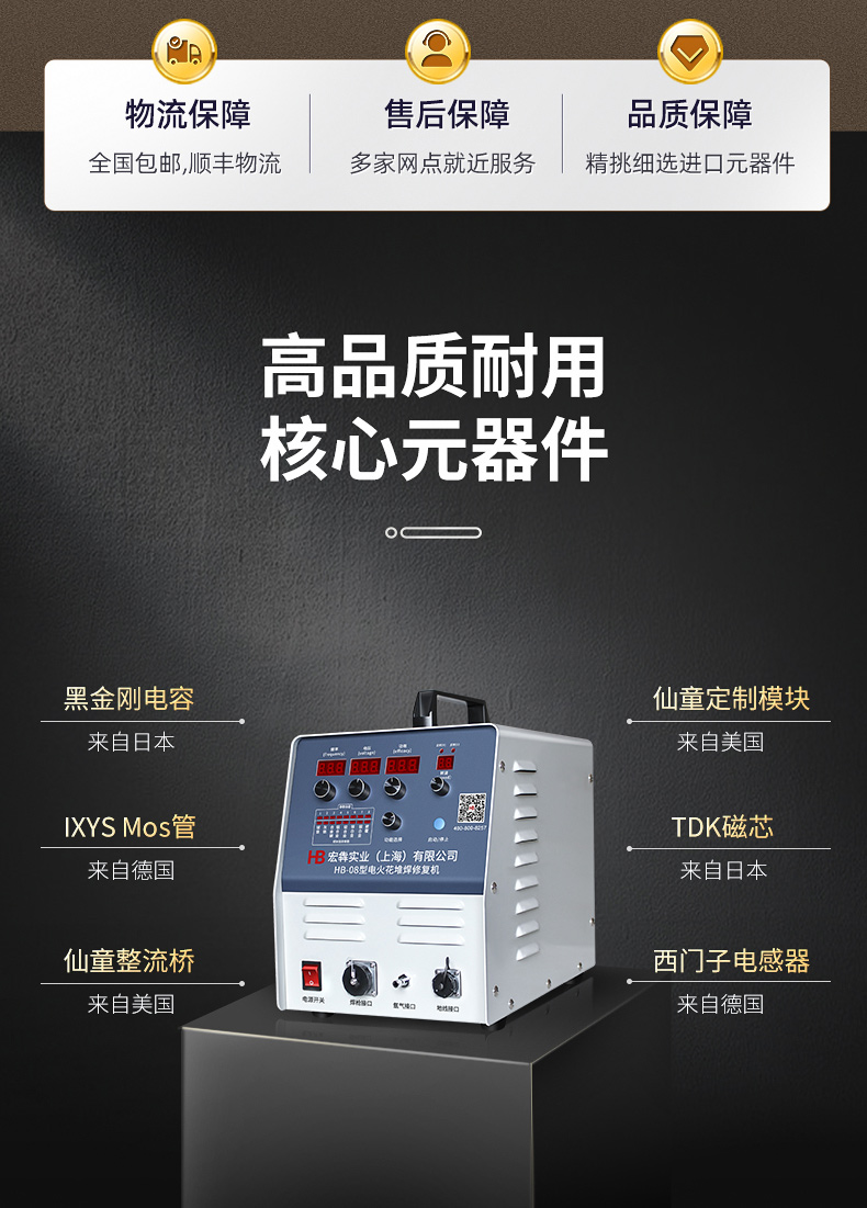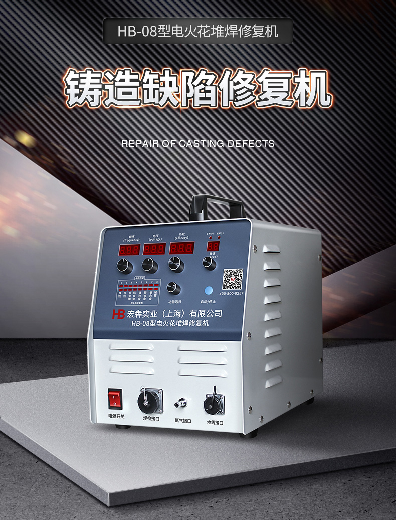 HB-08型电火花堆焊修复机是宏犇实业(上海)有限公司最新研发针对铸造缺陷修复的一款新型设备,本机采用高速高精度检测电路并配合64位ARM处理器,双逆变电源,等最新技术,使得机器工作输出稳定,焊补速度快,焊补精度高,焊补强度高,可达到冶金结合