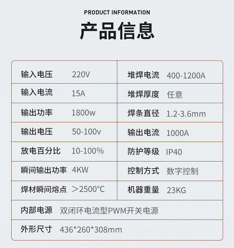 采用高速高精度检测电路并配合64位ARM处理器,双逆变电源,等最新技术,使得机器工作输出稳定